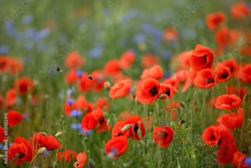 Obraz premium Spring wildflower fields: poppies, cornflowers