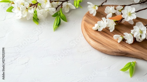 Naklejka premium Spring willow branches and flowers on a white table.