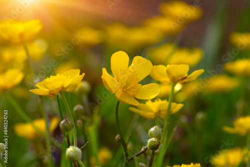 © Alekss, Obraz premium Spring yellow flowers on a field