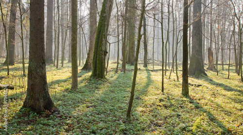 © Aleksander Bolbot, Fototapeta premium Springtime at old natural forest with fresh floral bed