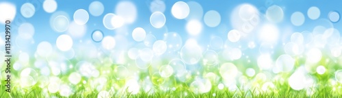 © Nobleart, Fototapeta premium Springtime Bliss Green Grass, Blue Sky, Bokeh Light Effects