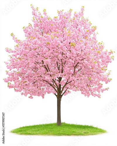 © Sarinya, Fototapeta premium Springtime Blossom Tree in Full Pink Bloom Isolated on White Background