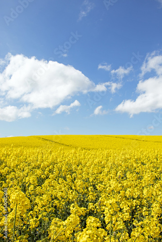 Obraz premium Springtime canola fields in the British countryside.