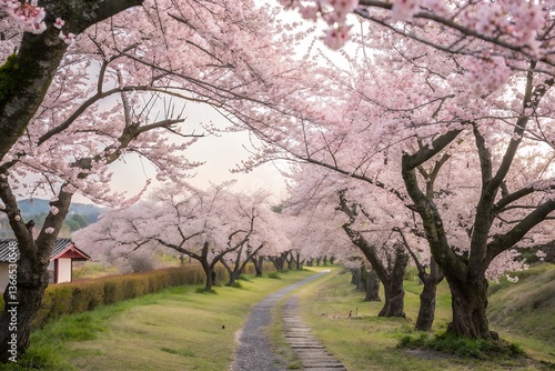 © Niko, Obraz premium Springtime Cherry Tree Orchard