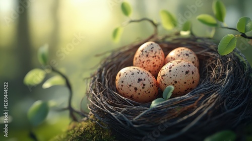 Fototapeta premium Springtime easter eggs in a nest for holiday greeting card design
