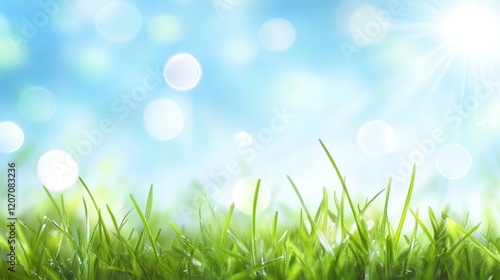 Obraz premium Springtime Grass with Blue Sky Background