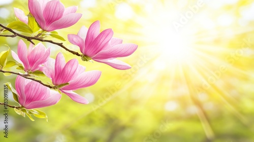 © Fragton, Fototapeta premium Springtime Magnolia Blossoms in Sunlight