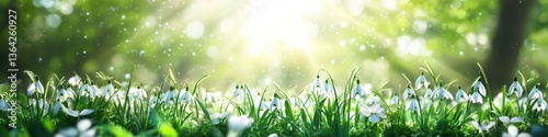 © Wa Bale, Fototapeta premium Springtime Meadow with Snowdrops