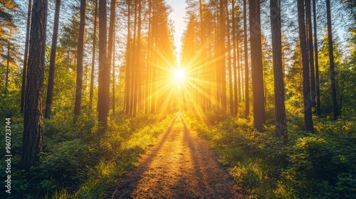 Fototapeta premium Springtime silence in the forest with the sun shining brightly