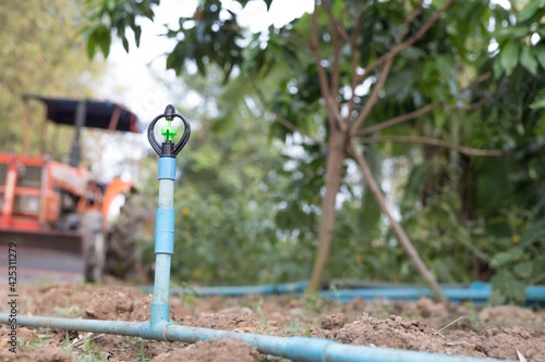 © Iknew, Fototapeta premium Sprinklers are used to water the plants.