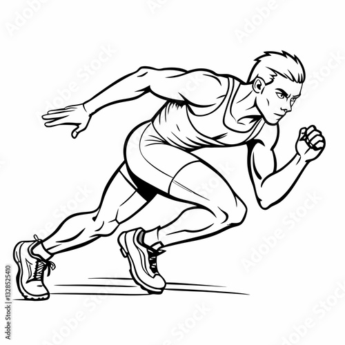 Fototapeta premium Sprinter in starting position ready to race on white background