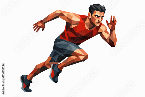 Fototapeta premium Sprinter running fast with determination, low poly polygonal athlete concept
