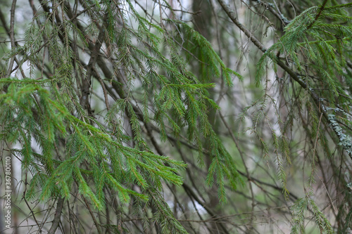 © IvSky, Fototapeta premium Spruce branch. Christmas tree in nature. Green spruce.
