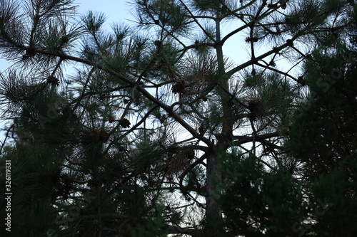 © Alina, Obraz premium spruce branch, conifer in the forest against the sky, close-up