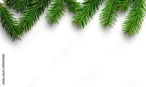 © piai, Obraz premium Spruce Branches Border on White Background
