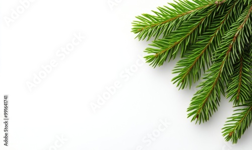 © piai, Obraz premium Spruce Branches Border on White Background