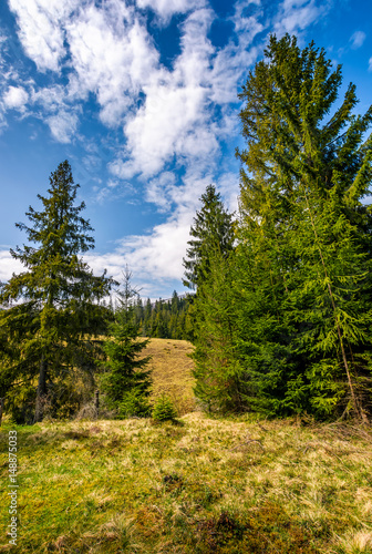 Obraz premium spruce forest in springtime landscape
