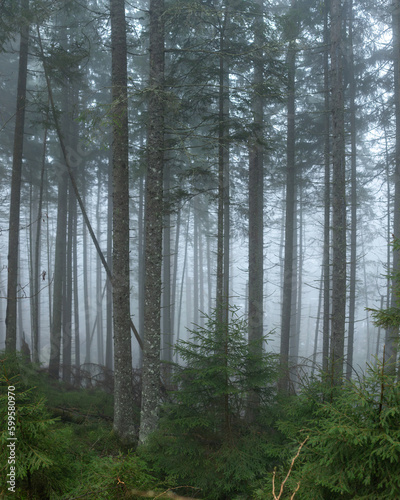 Fototapeta premium spruce forest in the fog