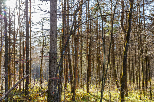 Fototapeta premium spruce forest, pinery, pine forest, Pine Tree, Fairy Forest untouched spruce...