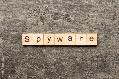 Fototapeta premium spyware word written on wood block. spyware text on cement table for your desing, concept