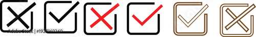 © jabireffacts, Obraz premium Square Check and Cross Icon Set in Outline and Bold Styles for Approval and Rejection