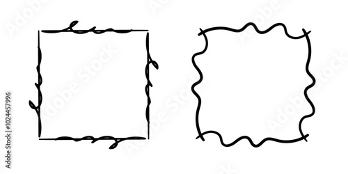 Fototapeta premium Square doodle frames ,hand-drawn monograms.Edgings and cadres with simple...
