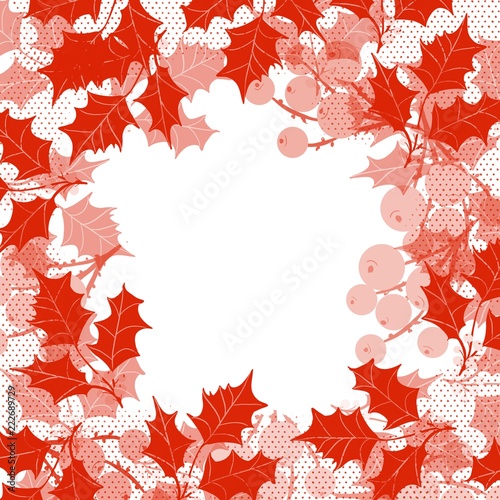 Obraz premium Square format invitiation greeting open frame for Christmas theme, holly,...
