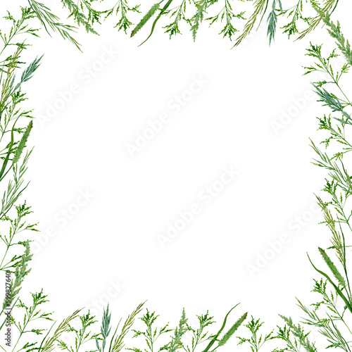Naklejka premium square frame from field herbs against white background.