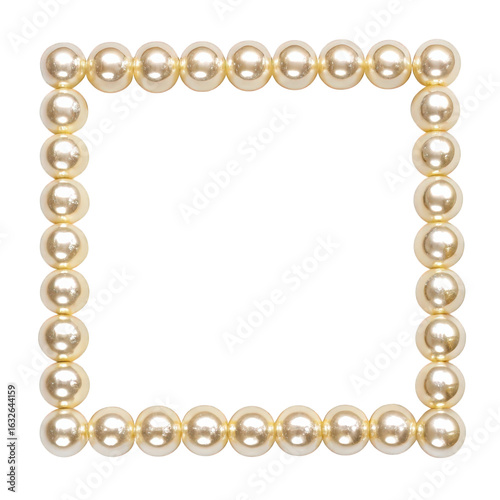 © X Land , Obraz premium Square frame made of ivory pearls on a white background, top down view on transparent background