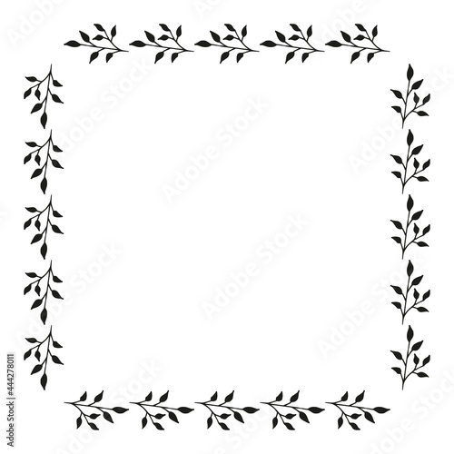 © Asahihana, Obraz premium Square frame with creative black branches on white background. Doodle style. Vector image.