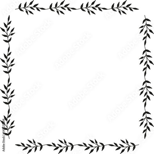 Obraz premium Square frame with positive black branches on white background. Vector image.