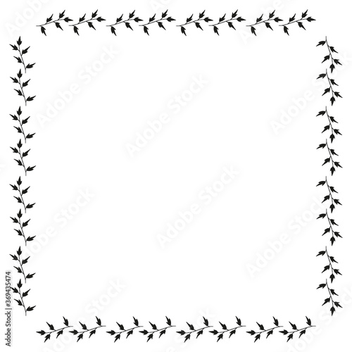 Obraz premium Square frame with simple black branches on white background. Vector image.
