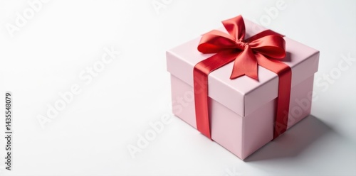 © jarin, Fototapeta premium Square gift box with satin ribbon, white background, macro, design, backdrop