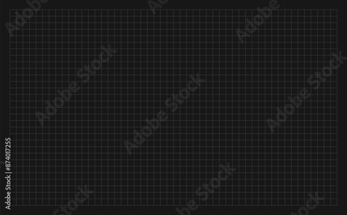 Fototapeta premium Square grid background with empty space on dark gray backdrop. Design of square graph paper, school math sheet, grid paper sheet, notebook pattern, architectural graph paper