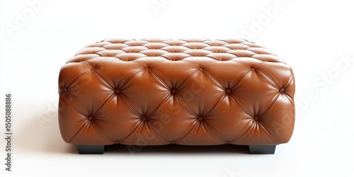 © Samady, Obraz premium Square leather ottoman with quilted pattern on white background
