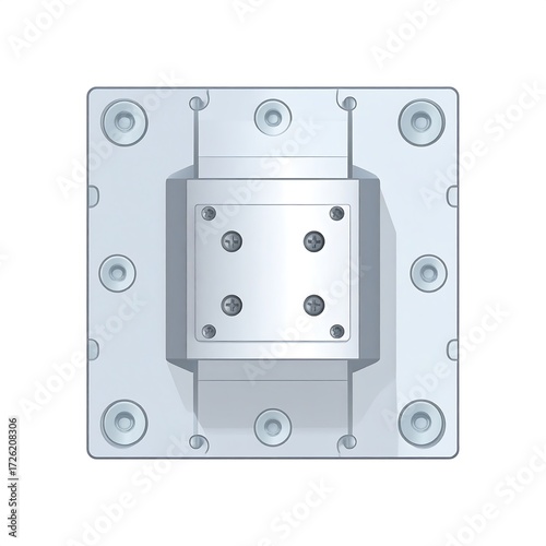 Fototapeta premium Square metallic component with a central block and peripheral mounting holes