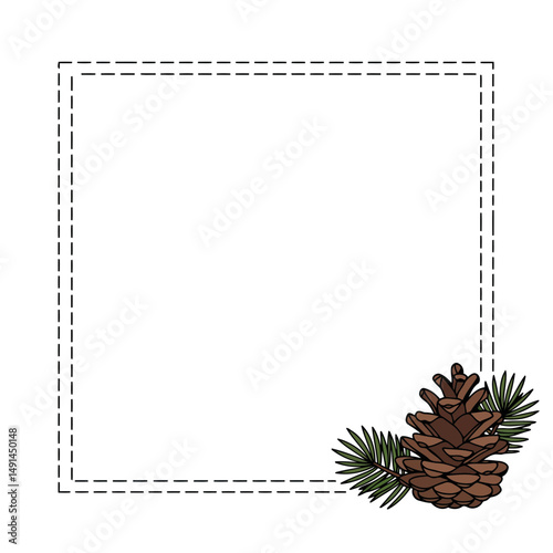 Fototapeta premium Square minimalist frame border with pine cone and branches