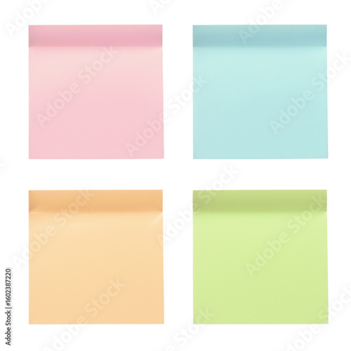 Fototapeta premium Square pastel sticky notes in four colors on white background