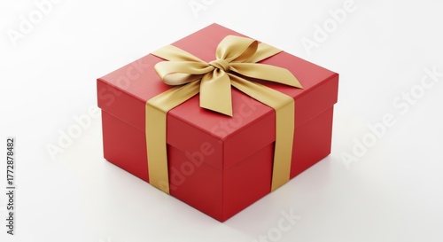 Fototapeta premium Square red gift box with gold ribbon isolated on white background,...