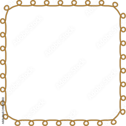 Fototapeta premium Square rope frame isolated on white background. Twisted cord.