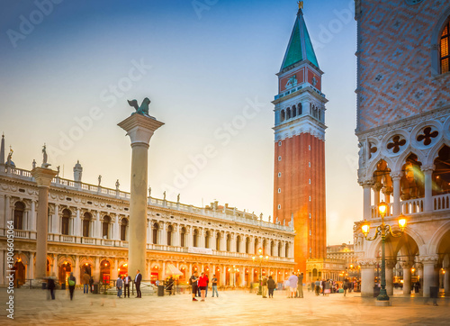 © neirfy, Fototapeta premium Square San Marco with Doges palace and belltower at night, Venice, Italy