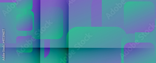 Fototapeta premium Square shapes composition geometric abstract background. 3D shadow effects and fluid gradients. Modern overlapping forms