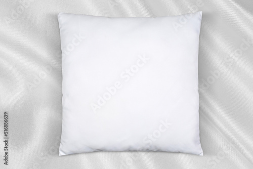 Obraz premium Square White Throw Pillow Mockup on Silk Background