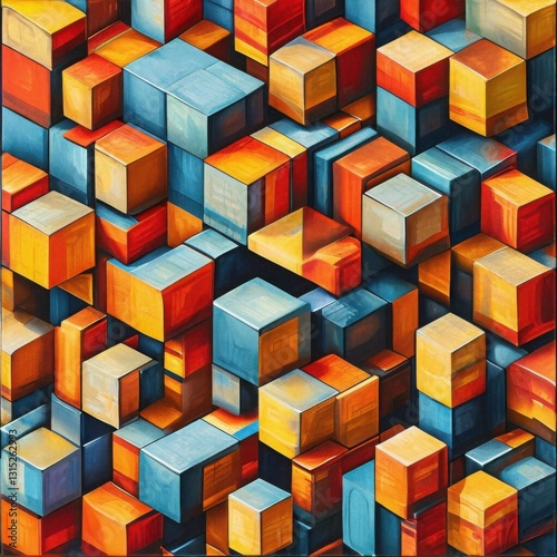 © Artem Arhipenko, Obraz premium Squares with shifted corners in blue and teal colors. Generated AI