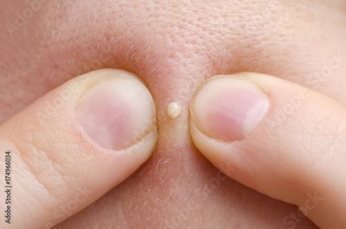 © vitaly tiagunov, Fototapeta premium squeezing pimple macro