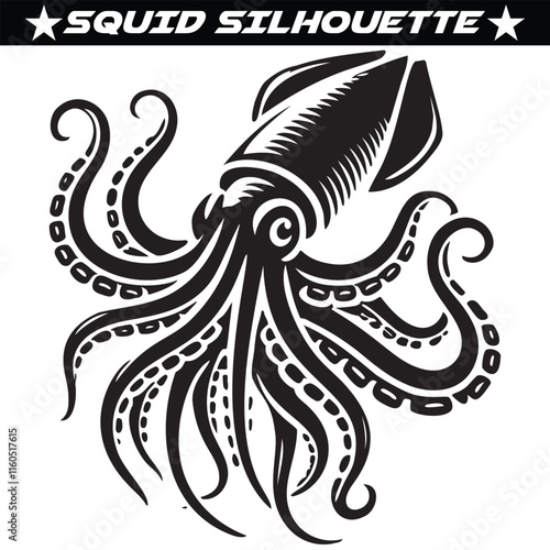 © Arnab, Obraz premium Squid silhouette isolated on white background.
