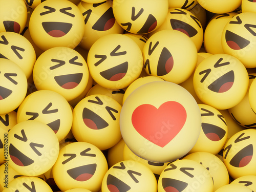 Obraz premium Squint Laugh Over Heart Symbol Emoticon Balls Crypto Currency 3D Illustration...