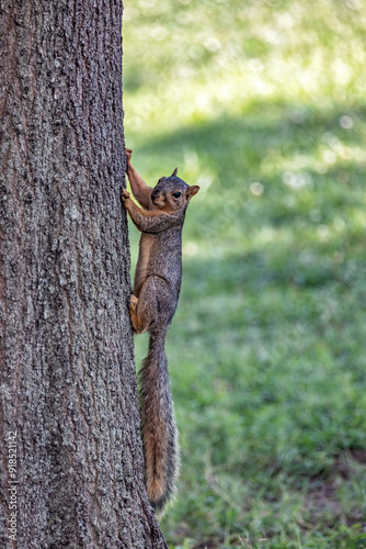 © Deana, Obraz premium Squirrel caught climbing a tree in summer
