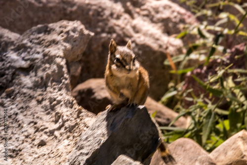 © Brian, Obraz premium Squirrel, Chipmunk on rock