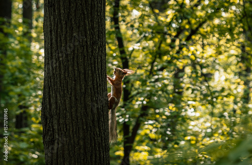 © Dmitrii, Obraz premium Squirrel Climbing a Tree